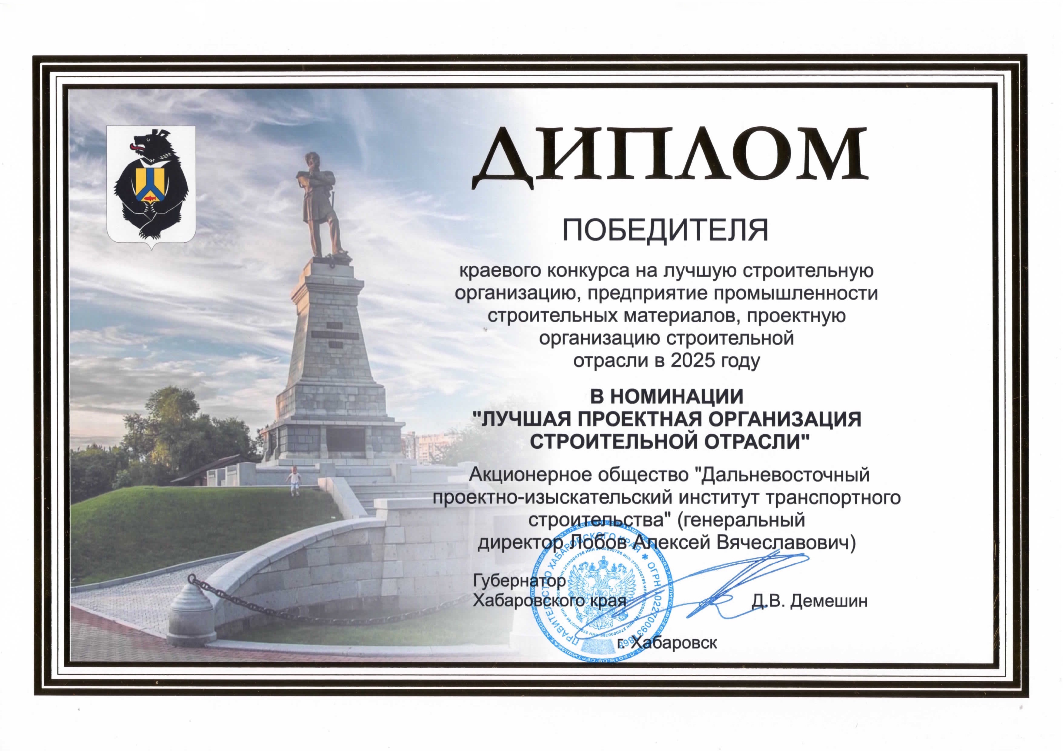 По итогам конкурса в номинации «Лучшая проектная организация» победу одержал «Дальневосточный проектно-изыскательский институт транспортного строительства»!